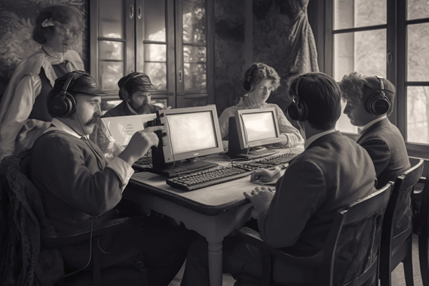 Oplev den interaktive digitale installation: Kunstige øjeblikke. Et værk der er skabt i samarbejde mellem digital kunstner Andreas Refsgaard og fem borgerinddragende workshop, hvor deltagerne ved hjælp af AI har skabt nye ”historiske” billeder.