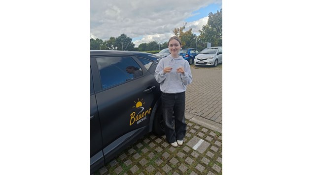 Bauers Køreskole ønsker Emma Christiansen tillykke med kørekortet og ser frem til at møde hende i trafikken.